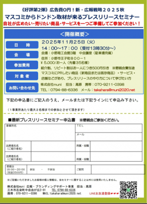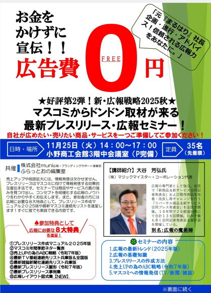 トップページ > 広告費O円!最新プレスリリースセミナーを開催(11月25日)